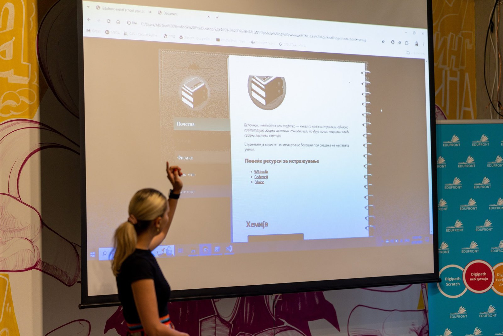 Во текот на две училишни полугодија, под менторство на Едуфронт предавачите, учениците се воведуваа во основите на програмирањето, веб дизајнот и графичкиот дизајн. После целогодишна континуирана работа и посветеност, задоволството беше големо бидејќи со успех заврши еден период на вложен труд. Доделувањето на дипломите за завршените обуки беше само заокружување на периодот. Самата церемонија беше поспецијална и позначајна за учениците, бидејќи се одвиваше во присуство на нивните родители и блиски другарчиња.