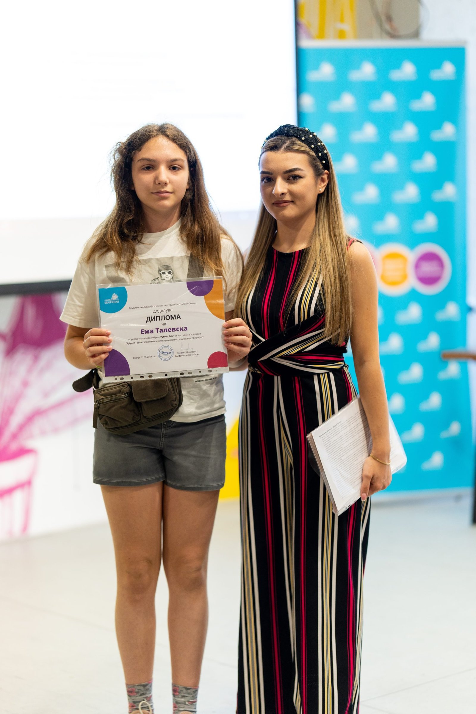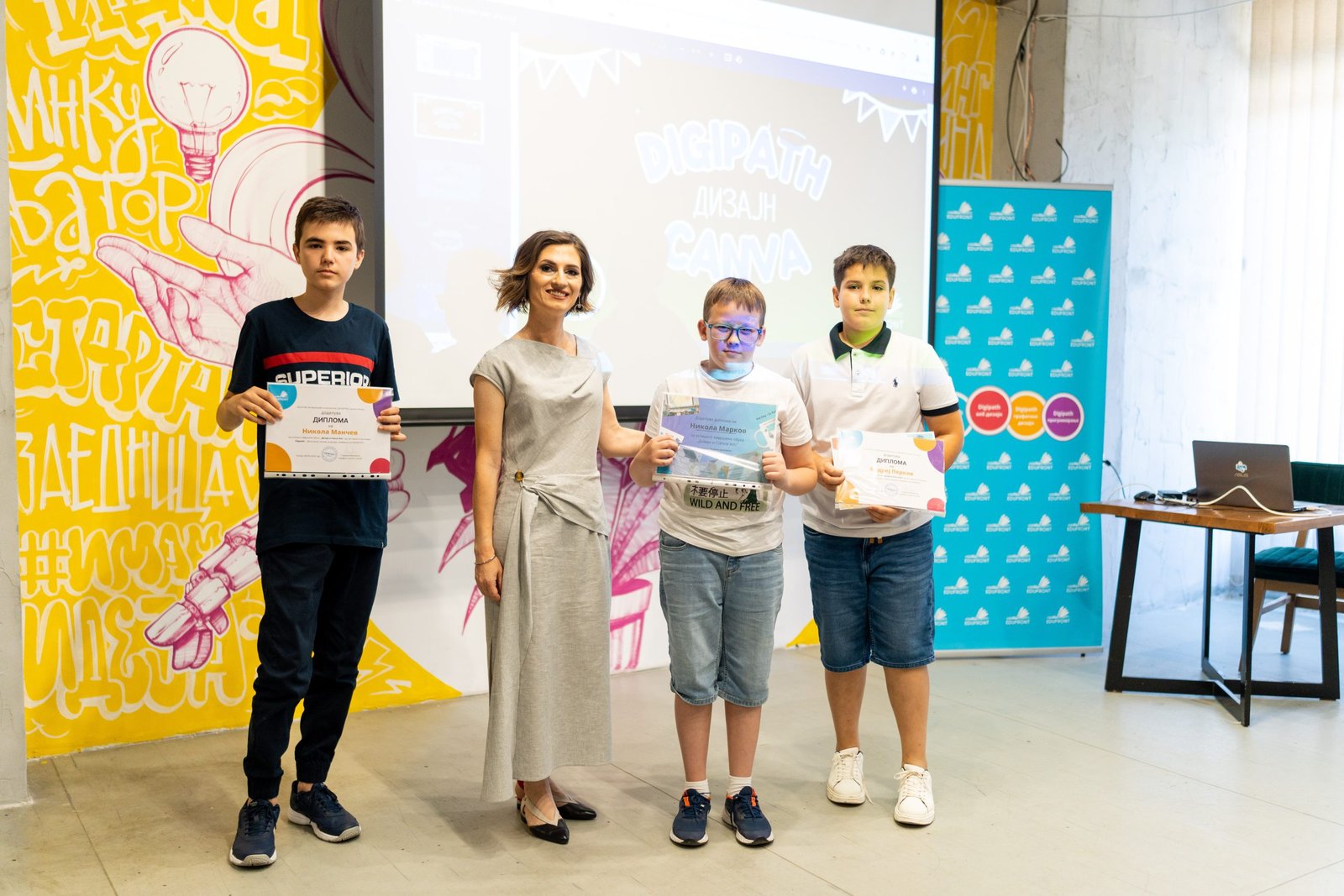 Нашите ученици посветено следеа настава во текот на цела учебна година и успешно завршија по две последователни онлајн обуки од избраната Digipath – Дигитална патека за учење. Затоа на завршниот настан доделивме повеќе од 100 дипломи, по една за секоја завршена обука.