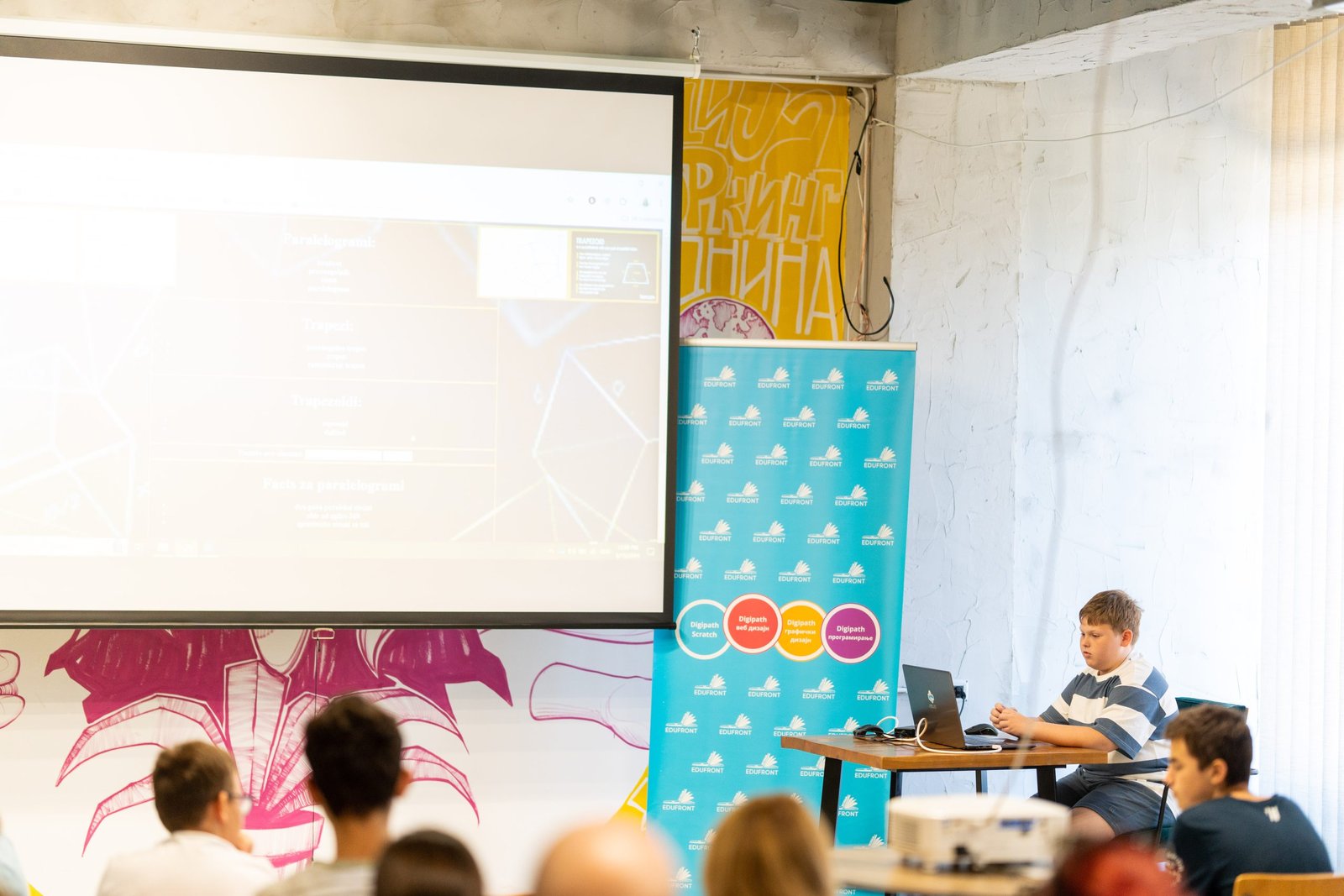 Scratch програмери: Најмалите програмери се пофалија со своите интерактивни 2Д игрички на интересни теми демонстрирајќи го нивното разбирање за основите на програмирањето и незаменлива детска креативност.