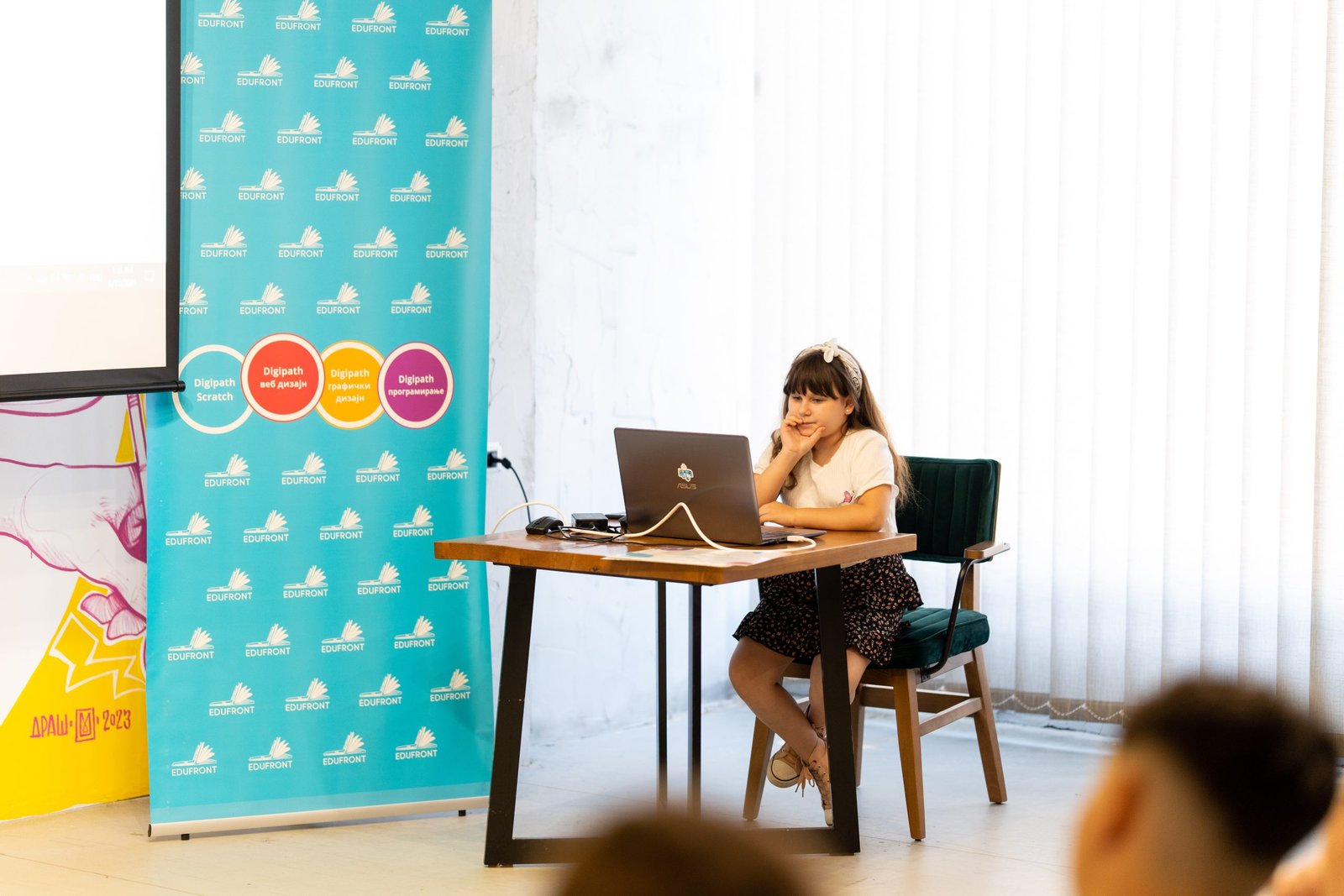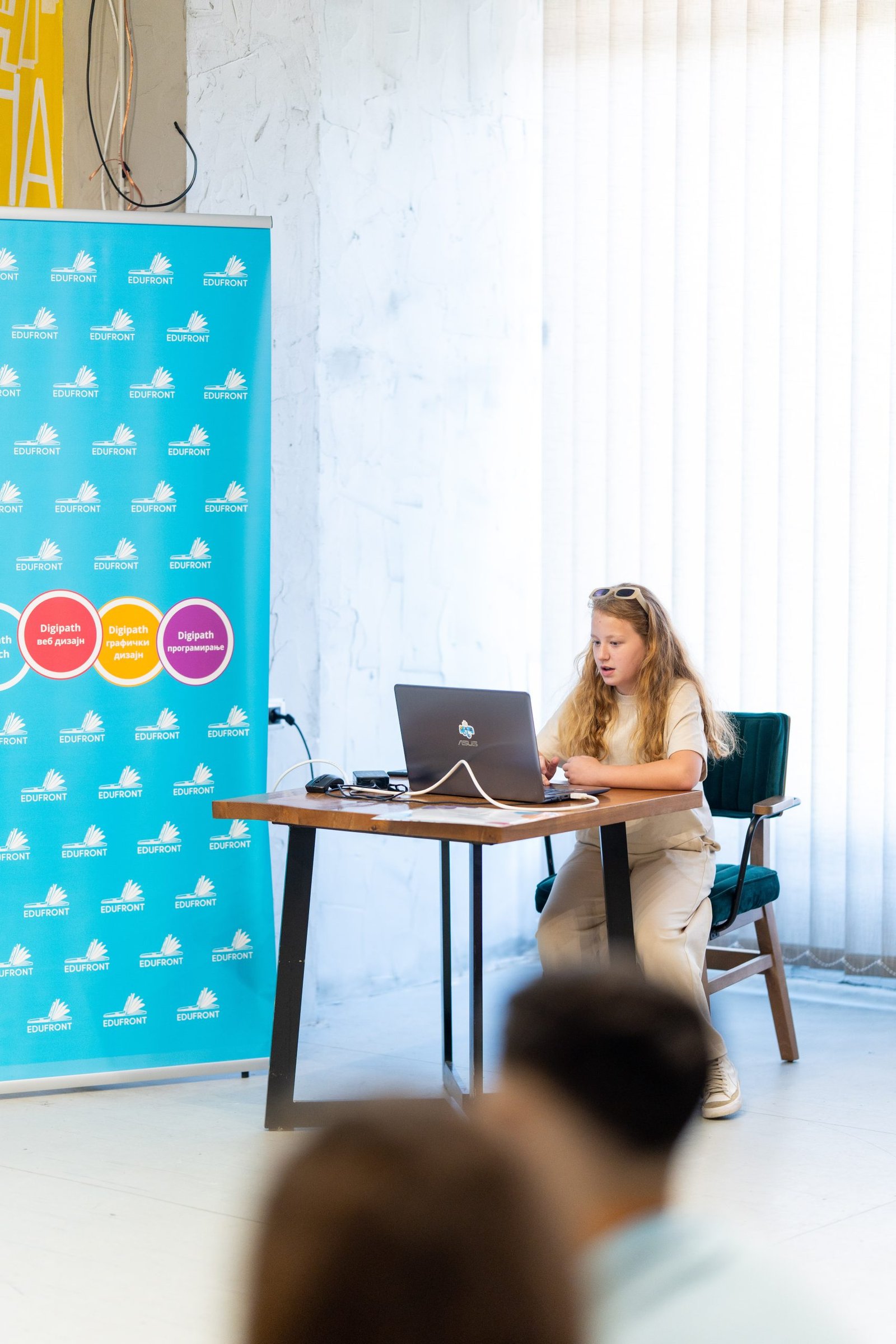 Графички дизајн: Учениците од оваа дигитална патека ги презентираа своите изработени дизајни во платформата Canva, демонстрирајќи ги стекнатите вештини за креативен и професионален дизајн.